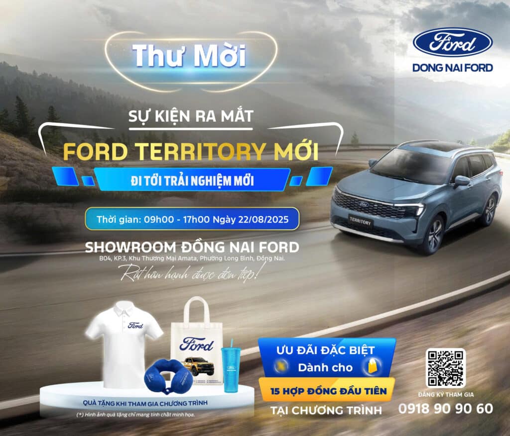 🎁 Ngoài ra, tất cả khách hàng tham dự sự kiện ra mắt Ford territory Facelift đều sẽ nhận ngay một phần quà tặng hấp dẫn đến từ Đồng Nai Ford.